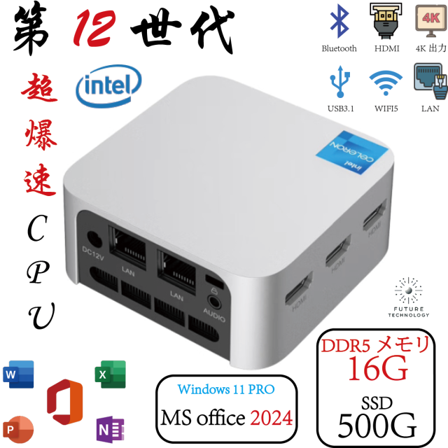 ミニpc MS office 2024 搭載 DDR5 小型 デスクトップパソコン 一体型pc Windows11 在宅勤務 省スペース N150 パソコン コンパクト型 新品 office付き