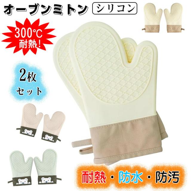 2枚セット オーブンミトン 耐熱ミトン 鍋つかみ 耐熱グローブ シリコンオーブンミトン 両手用 オーブンミトン耐熱 シリコンミトン 火傷防止 滑り止め おしゃれ 耐熱 防 耐熱性300℃