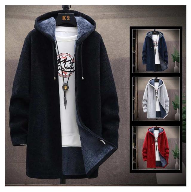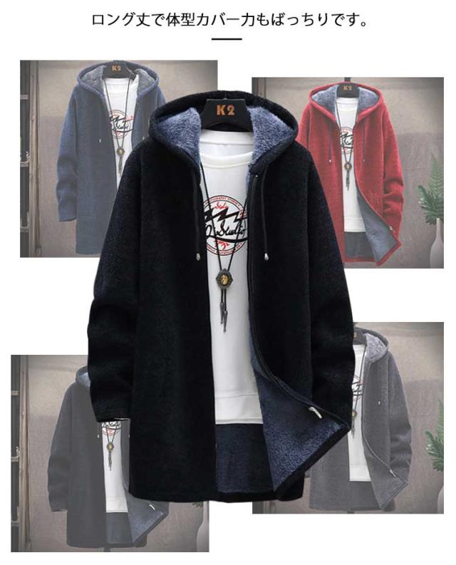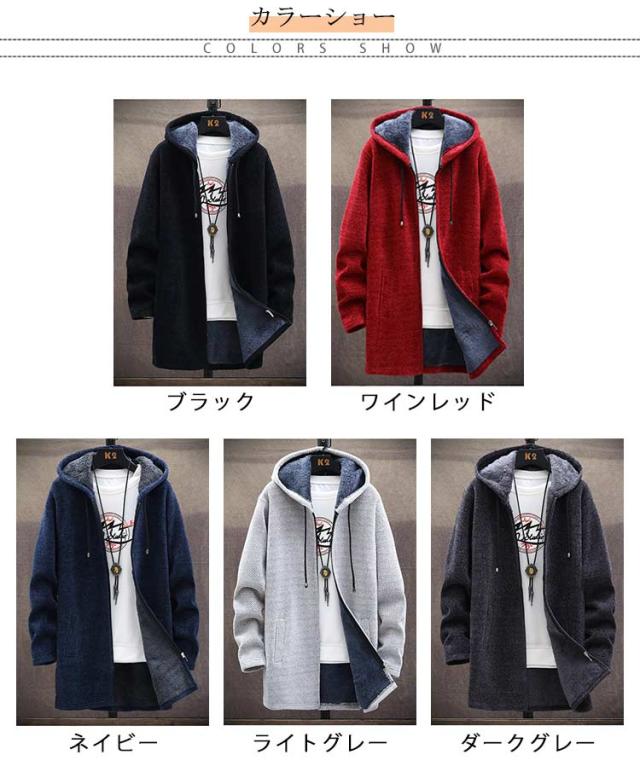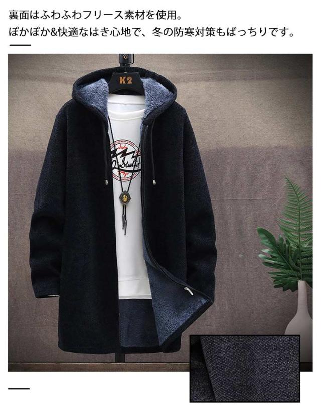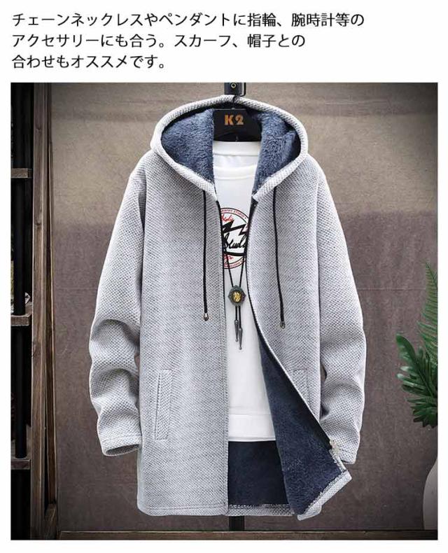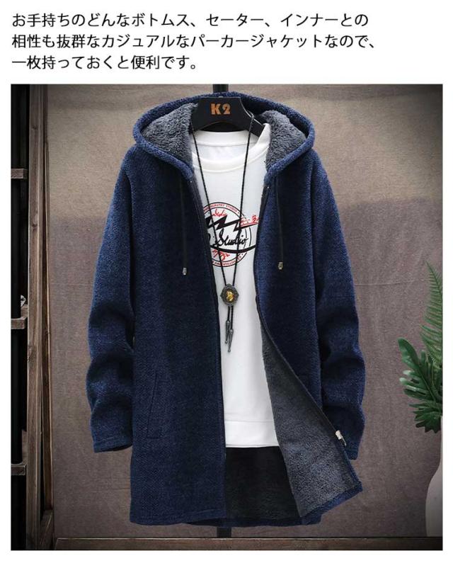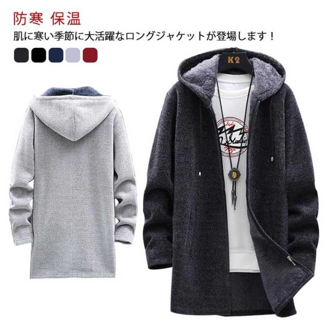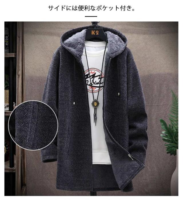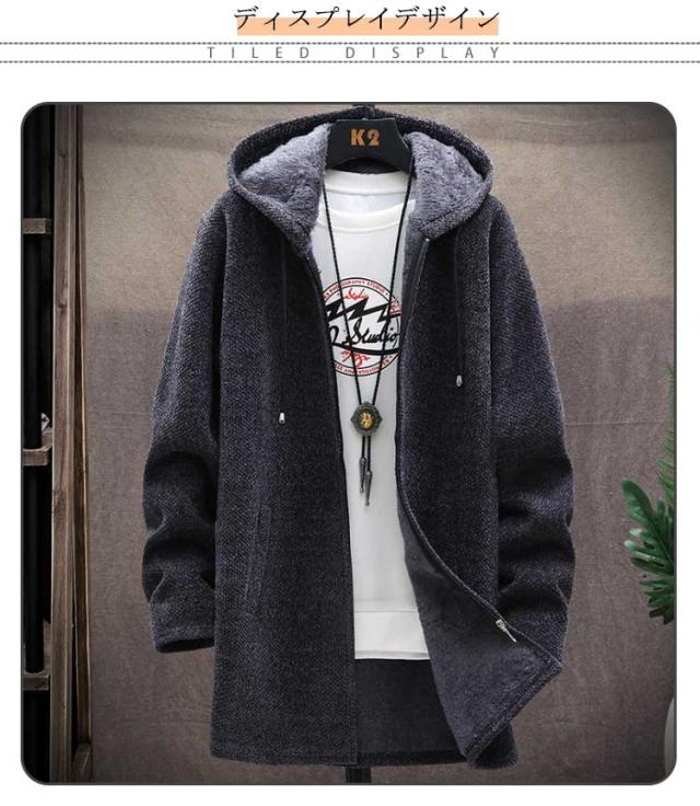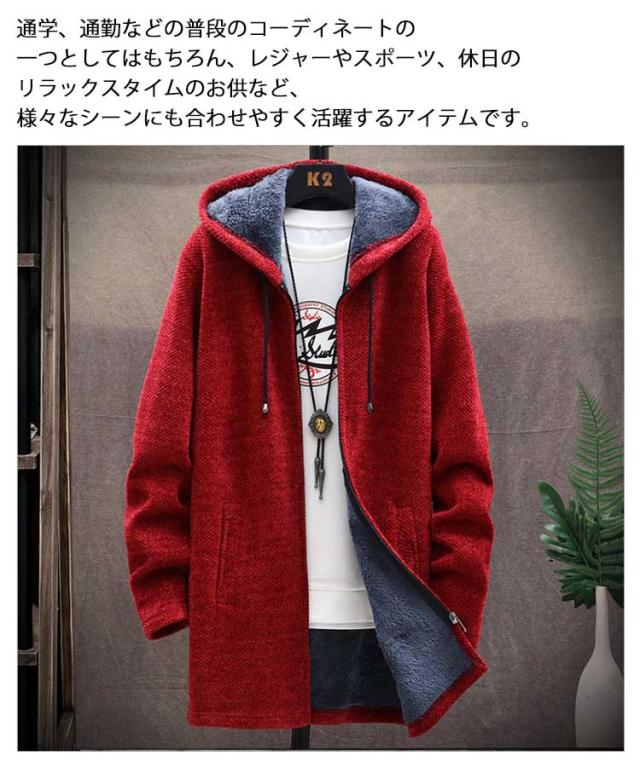 送料無料 ロングコート メンズ ニット ジャケット 裏起毛 アウター ロング ジャケット あったか 防寒 保温 厚手 裏ボア ニットコート フード付き ロングパーカー カーディガン 大きいサイズ ゆったり 秋冬 カジュアル 秋 冬