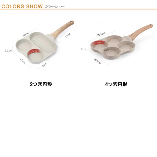 | 【健康素材・安全安心】人間と地球環境に優しい材料が使われています。さらに、卵フライパンはアルミ合金+ベークライト製で、鍋の内側の取っ手は錆びず、リベットもありません。 【2つ穴/4つ穴のデザイン】味の異なる2つ/4つの卵またはハンバーガーを同時に揚げるか、3つの/4つ異なる食品を揚げることができます。これはエネルギー効率がよく、家族の毎日の朝食のニーズを満たします。 【調理気分アップ!】機能性に拘るだけではなく、見た目も重視されています。オシャレなデザインにより、キッチンを明るく、日々のお調理がより一層楽しくなります! 【焦げ付き防止鍋】フライパンは、卵、ステーキ、ハンバーガー、ソーセージなどを揚げるために使用できるため、時間を節約できます。 延長されたベークライトハンドルは、効果的に断熱材を加熱し、火傷を防ぐことができます。 鍋本体は焼けず、鍋の底に付着しません。従来の鋳鉄鍋に比べ、均熱性に優れているため、調理時には弱火にすることをお勧めします。 【対応熱源】IH、 ガスコンロ、 ラジエンヒーター 、エンクローヒーター 、シーズヒーター 等オール熱源対応!※電子レンジ&オーブン非対応! | |