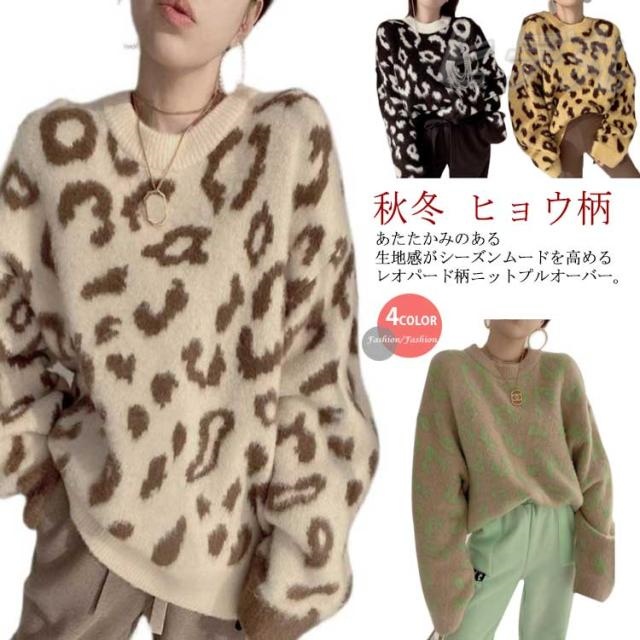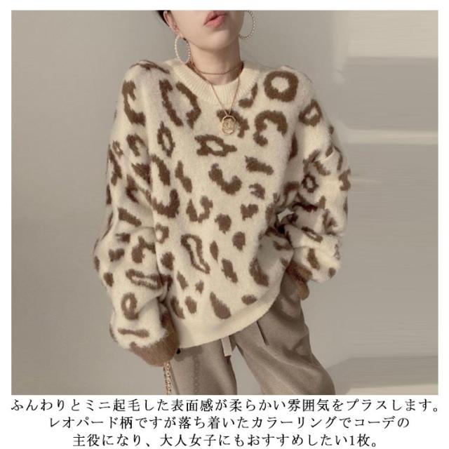 送料無料 レオパード柄 ニット セーター レディース 長袖 プルオーバー 厚手 ニット トップス 秋 冬 ゆったり クルーネック ヒョウ柄 トップス ドルマンスリーブ ふんわり ニット あったか 暖かい おしゃれ フェミニン 大人 女性 カジュアル 秋冬 秋服 冬服