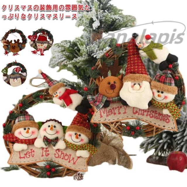 | クリスマスの装飾用の雰囲気たっぷりなクリスマスリース サンタ、雪だるまとトナカイのぬいぐるみが可愛さをたくさん詰まりました! 多くの種類のパーツを組み合わせて出来ている凝ったデザイン、インテリアとしても人気があります。 華やかなリースは眺めるだけでクリスマス気分を演出してくれます。お部屋に、玄関に…お好きな場所に飾ってお楽しみください。 自分用だけでなく、ギフトとしても選ばれています。 | |