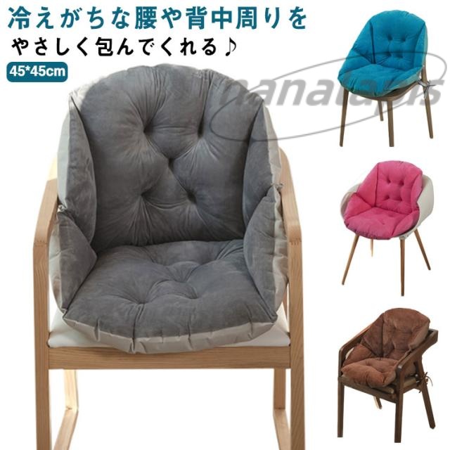 背もたれ 椅子 クッション 暖かい チェアクッション テレワーク 7色 背もたれ付き 座布団 シートクッション リモート オフィス ソファー もこもこ ふわふわ カバー 腰痛 冷え性 椅子用 イス 腰周り こたつ 座椅子 取付け簡単 防寒 冬
