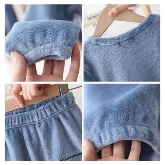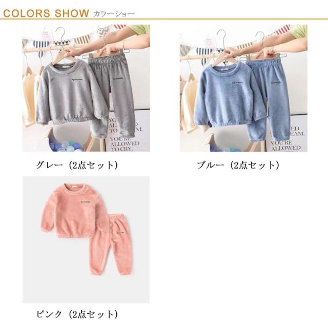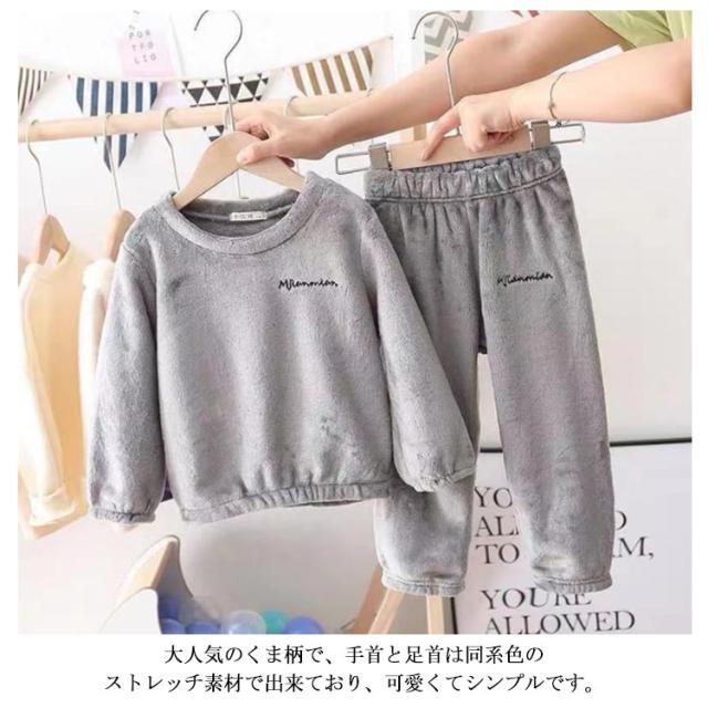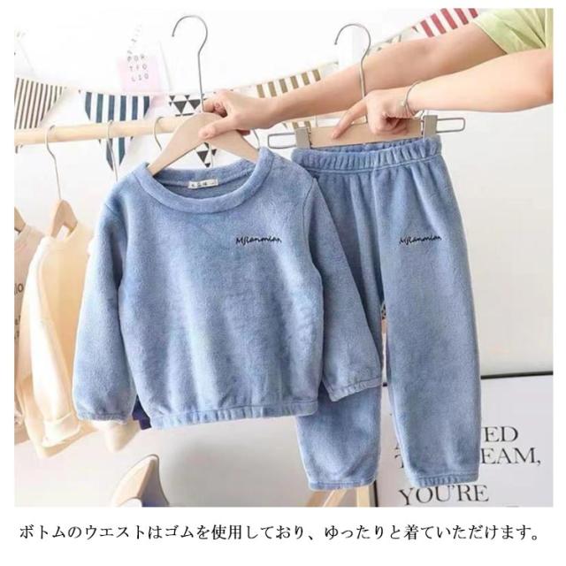 送料無料 ルームウェア もこもこ キッズ 上下セット パジャマ 防寒 無地 裏起毛 ナイトウェア ホームウェア フリース 部屋着 ボア 子供 女の子 男の子 ユニセックス 暖かい 秋冬 可愛い 起毛 長袖 寝間着 寝巻き プルオーバー 冬物 お揃い セットアップ トップス パンツ