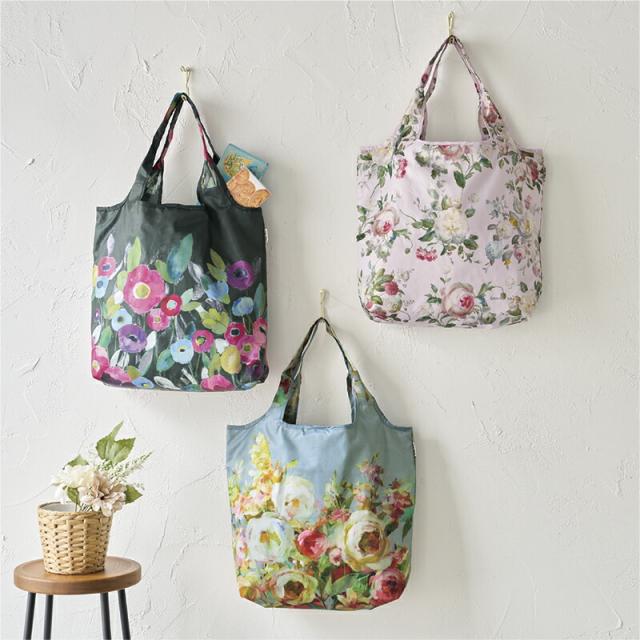たくさんの花が咲き誇る華やかなエコバッグ。