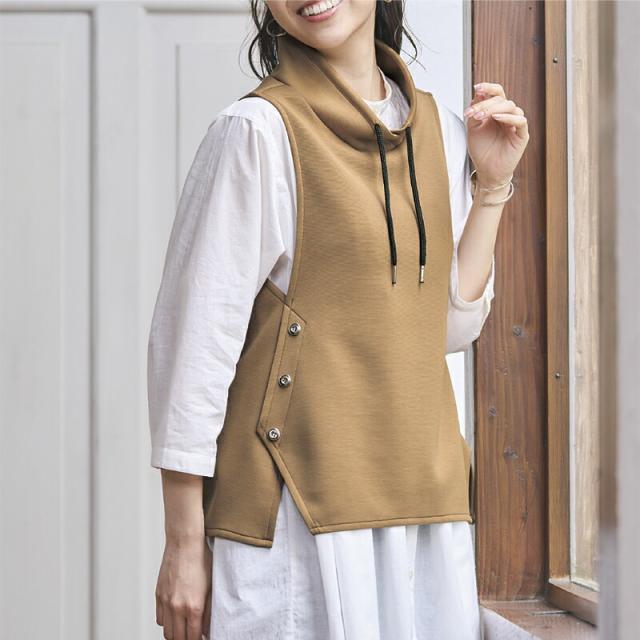 手触りの良い、ほどよく伸びるダンボールニットのベスト。