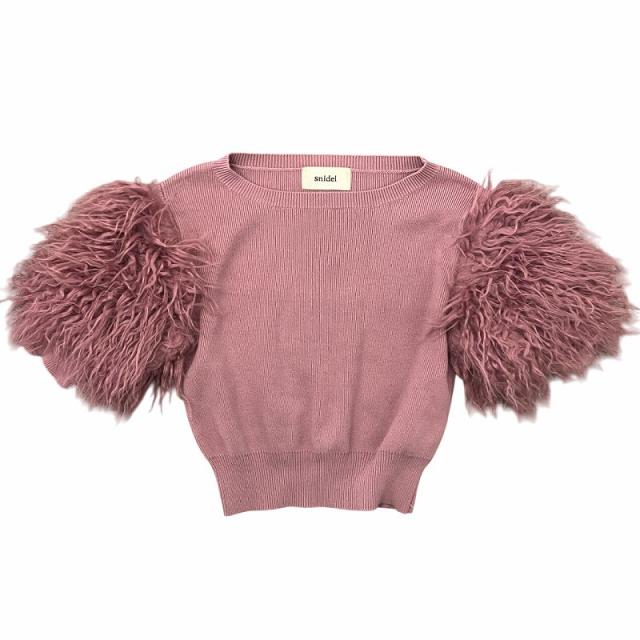 【中古】スナイデル SNIDEL 17AW ポイントエコファーニットトップス ニット 半袖 フリル ピンク F レディース
