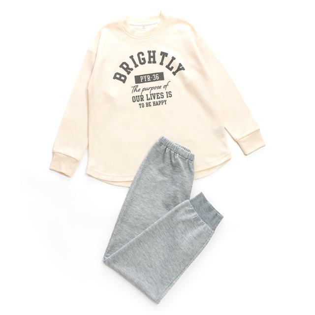 パジャマ キッズ 女の子 内側が綿100% 長袖 春 秋向き スウェット上下 リブ仕様 ニュアンスカラー ロゴプリント ラウンドヘム アッシュブルー グリーン ナチュラル 130 140 150 160 子供 ガールズ ジュニア かわいい 81704