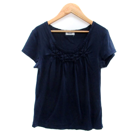 【中古】自由区 オンワード樫山 Tシャツ カットソー ラウンドネック 半袖 40 L 紺 ネイビー /HO6 レディース