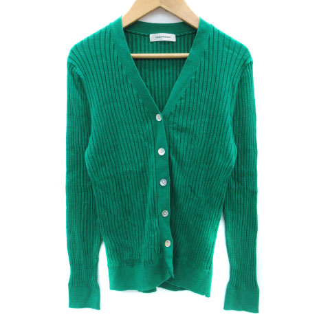 【中古】クリアインプレッション ニットカーディガン ミドル丈 Vネック リブ 13 大きいサイズ 緑 グリーン