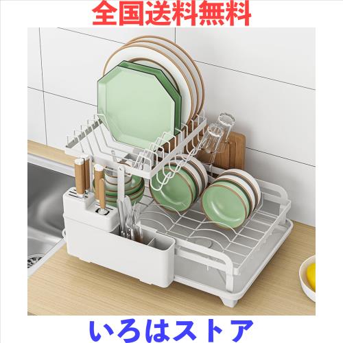 Hoisimdy 食器水切りラック キッチン 水切り 食器ラック 食器乾燥ラック 自動排水 2段 (ホワイト)