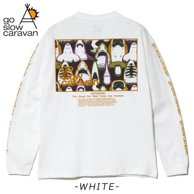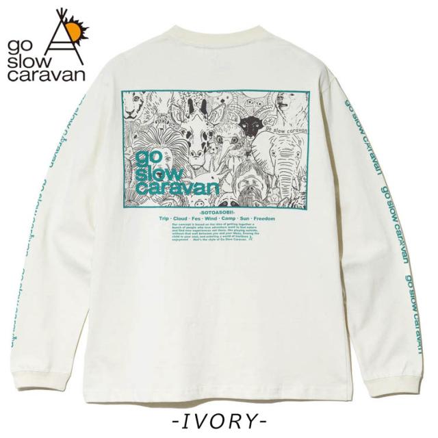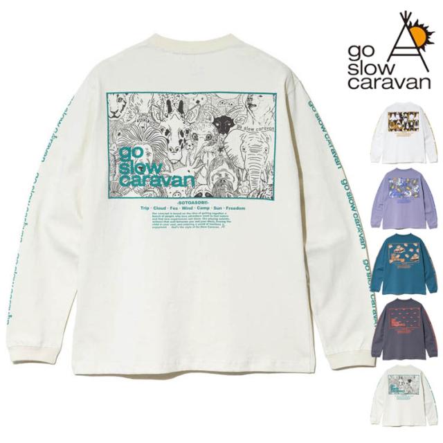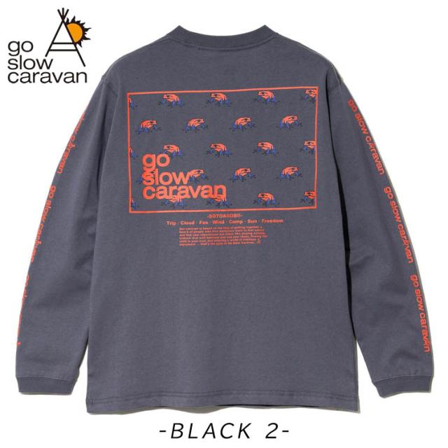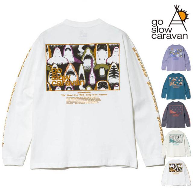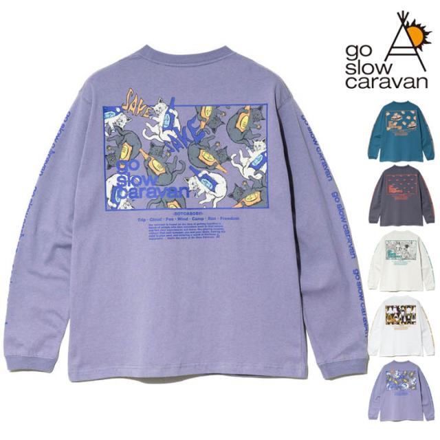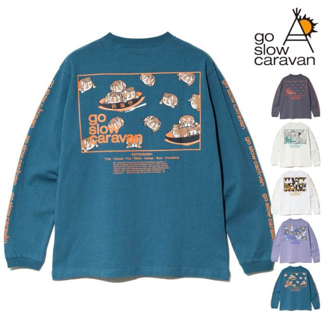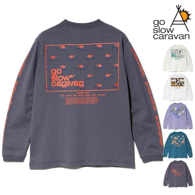 ゴースローキャラバン 長袖Tシャツ スクエアLOGO バックプリント Tシャツ go slow caravan クルーネック USAコットン ロンTEE プリント アウトドア イベント プレゼント 351902