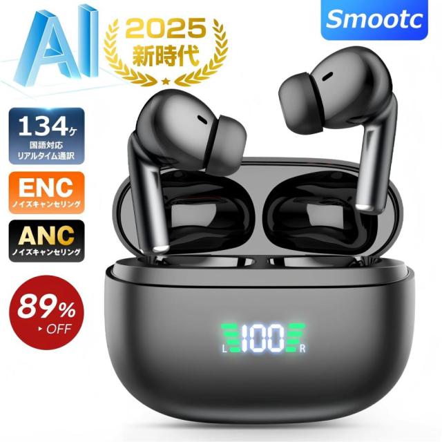 ワイヤレスイヤホン 2025年新型モデル・AI翻訳機能付 イヤホン bluetooth5.4 ノイズキャンセリング 自動ペアリング マイク付き ENC通話 HiFi LEDディスプレイ