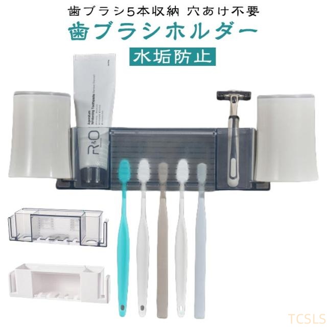 | 歯ブラシ5本収納 穴あけ不要 歯ブラシホルダー シンプル&スタイリッシュで人気の歯ブラシスタンド( はぶらしホルダー )です。 狭いバスルームや洗面所もOKの省スペース。 モノトーンカラーもオシャレ♪ ●壁掛け式の省スペース便利グッズ、歯磨き、歯ブラシとコップを一括に収納できる ●逆付け式で通気性がよく、コップには水が溜まらない ●アクリル接着パッドを使用するのでいつでも取り外し可能 ノンマーキングステッカー装着 粘着剤が剥がれにくい ノンマーキング施工、非粘着性で壁を傷つけず、しっかり装着、防水・防湿 濡れた環境でも安心 歯ブラシを掛けやすく、取り出しやすい5つのポジション 歯ブラシは収納しやすく、間隔も広いので、清潔に使えます。 歯磨き粉用収納スロット 洗面用具の多目的収納、使いやすい 底部ドレインホール 水がたまらず、通気性がよい 換気と排水で新鮮に保管、清潔で衛生的 ホコリやカビを防ぐため、マグカップを逆さまにする マグカップを逆さにして支え、水の滞留をなくすことで細菌の繁殖を防ぐことができる 手順: 1.表面をきれいに拭き取る。 2.粘着パッドの保護層を剥がす。 3.粘着パッドを壁に張り付ける。 4.本体ボックスを粘着パッドのフックに掛ける。 ※滑らかなセラミックタイルやガラスに貼り付けすることをお勧めします。 設置方法デモ 1.ノンマーキングプロテクトフィルムをはがす 2.壁に貼り付け、壁掛け金具を引き下げる 3.気泡を絞る 4.ハンガーを吊るして設置完了 | |