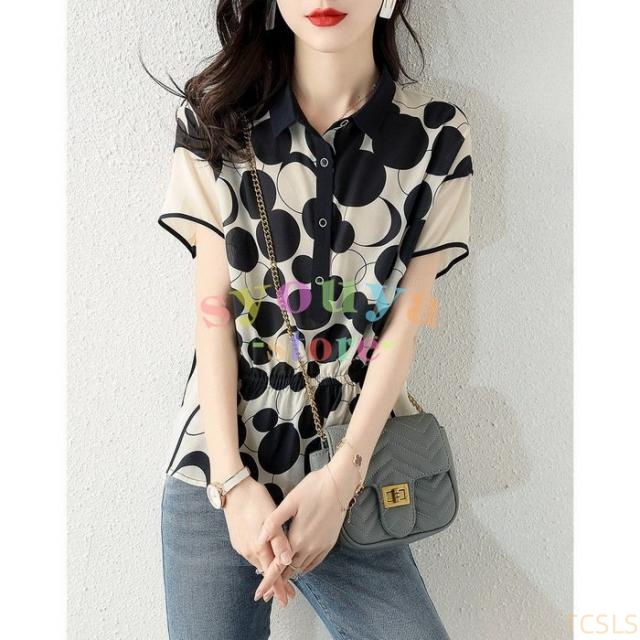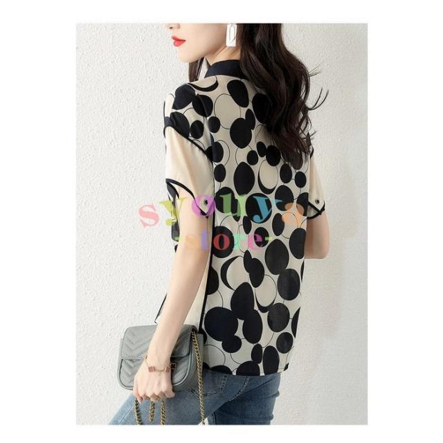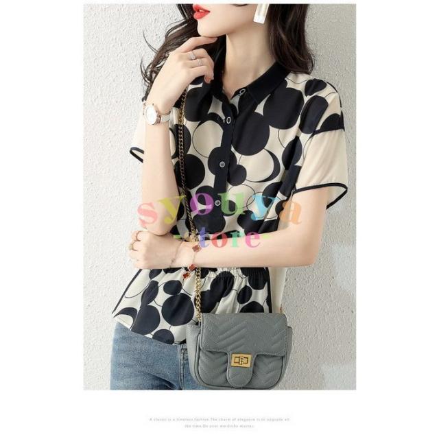 ブラウス レディース 40代 春夏新作 オシャレブラウス シャツ シフォンブラウス おしゃれ ドット柄 半袖トップス 韓国風 大人 通勤OL ゆったりシャツ 30代50代