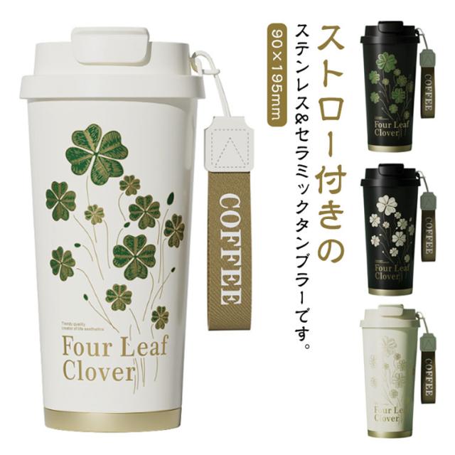 タンブラー セラミック 水筒 ストロー付きタンブラー 蓋付き 直飲み ストロー付き コーヒータンブラー マグボトル 魔法瓶 500ml 大容量 持ち運び 漏れ防止 車カップホルダー対応 保温 保冷 真空二重断熱 ステンレス 広口 アウトドア オフィス キャンプ 運転 おしゃれ