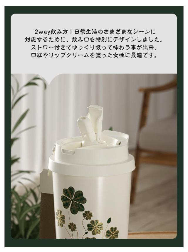| ストロー付きのステンレス&セラミックタンブラーです。 カップ内びんは環境にも、体にも優しい高品質ステンレス316で作られ、蓋は食品グレードのシリコン製、PP、完全にBPAフリーで、化学物質の悪影響を防ぎます。 2way飲み方!日常生活のさまざまなシーンに対応するために、飲み口を特別にデザインしました。ストロー付きでゆっくり吸って味わう事が出来、口紅やリップクリームを塗った女性に最適です。直飲み口も小さめなので、熱々が苦手な猫舌さんにも最適、運転の時使っても安全です。 保温&保冷!ステンレス真空断熱、飲み物の温度を保つ能力を最大限に高めています。ホッとコーヒーや冷たいドリンクなどの飲み物を入れるに最適なマグカップ。冷たい飲み物を入れても結露しない、何回も雫を拭くことは不要です。熱い飲み物を入れても、温度が内側から外側に伝わない、ご安心に使用できます。 安全&安心!カップカバーにゴムシリコーンが付いており、液体の漏れを効果的に減らします。運転中または自宅で使用中に発生する揺れは、カップ内の液体のオーバーフローを引き起こし、ゴムシールリングが一定の保護作用を果たすがあります。また、他の様々な場面にも適用され、家にいても旅行にいても出勤しても、良い選択です。 使用範囲が広い!屋外/家/オフィス/のために適したステンレス316のコーヒータンブラーで、家庭、ビジネス、旅行、出張などのシーンと遠足、釣り、登山、自転車、キャンプ、BBQなど様々なアウトドア活動に最適です! | |