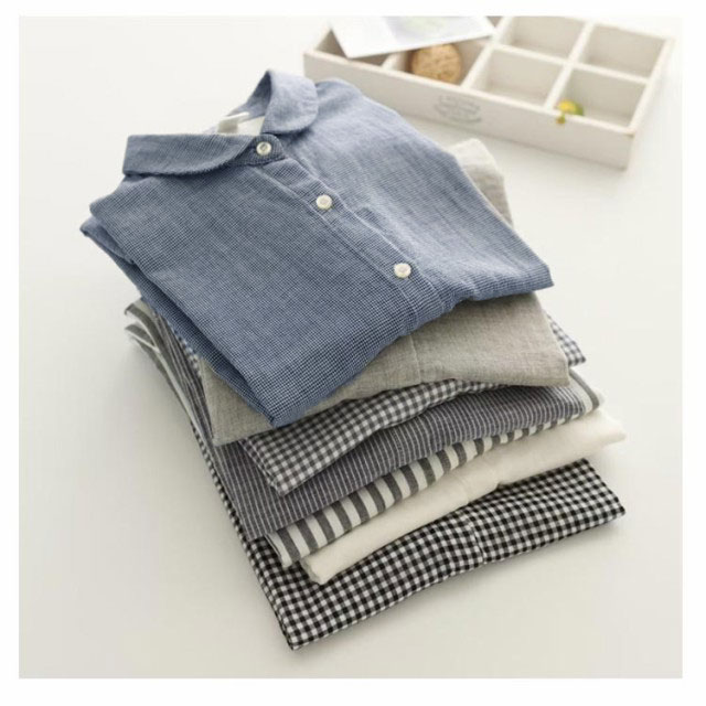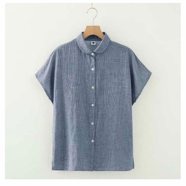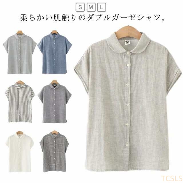 ガーゼ シャツ 丸襟 ブラウス レディース 半袖 ガーゼシャツ ダブルガーゼ 綿 トップス 夏 秋 春 無地 チェック ストライプ 柔らかい ナチュラル 可愛い 送料無料