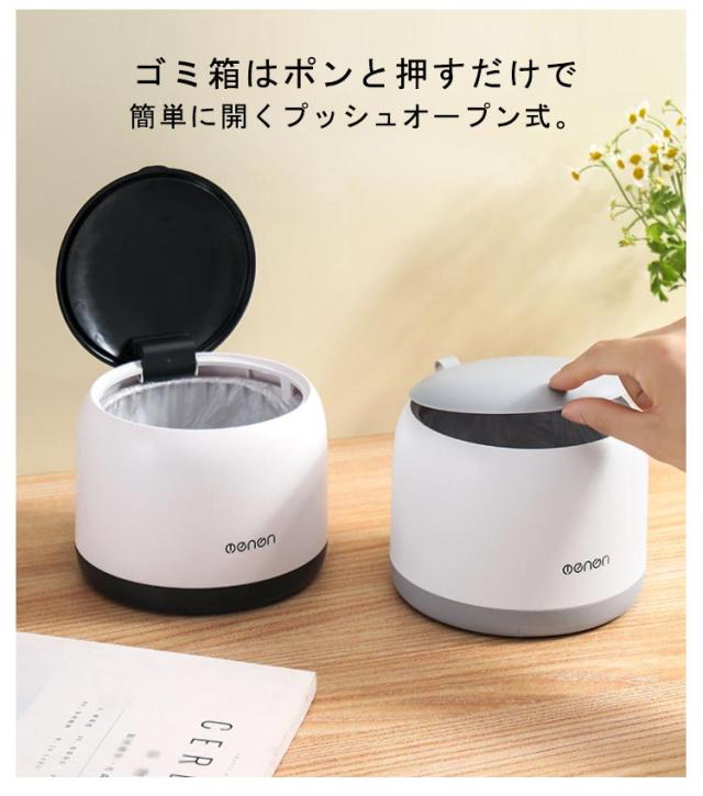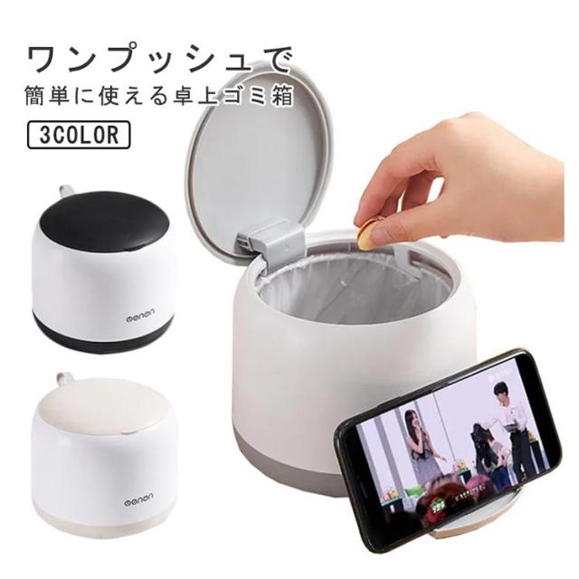 | ワンプッシュで簡単に使える卓上ゴミ箱 無駄をなくした極シンプルのデザイン、どんな部屋にも相性抜群です。 ゴミ箱はポンと押すだけで簡単に開くプッシュオープン式。 口径が広いのでパパっと楽にゴミが捨てられます。 大容量、食卓でティッシュや果物の皮などを入れるゴミ箱としても良さそうです。 耐久性に優れた素材で作られていて、しっかり丈夫で変形しにくい。 スマホスタンド付き、機能性が抜群♪ | |