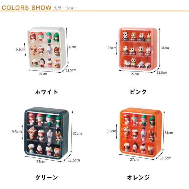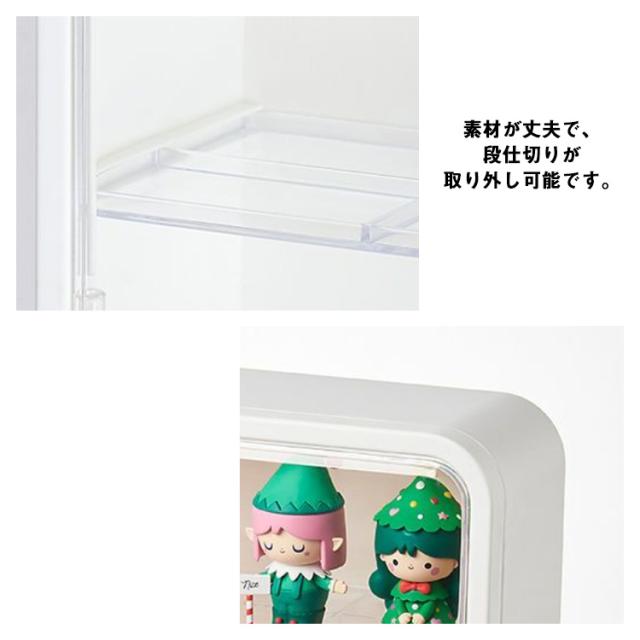 | フィギュアなどのコレクションケースです。小物のコレクションに最適です。 置く、壁に掛ける2WAYの使い方ができるコレクションケース。 3層のステージデザインにより、コレクションをきれいに整然と表示できるため、視覚効果が向上します。 素材が丈夫で、段仕切りが取り外し可能です。 マグネット仕様の扉で、片手で開閉できます。 壁掛けタイプは、吊り下げヒモ不要のスッキリ仕様、付属の粘着シールがケースを固定します。 貴重なコレクションをホコリから守ります。 上にも物を置けるので、ちょっとした小物をディスプレイするのも◎ ガシャポン人形やフィギュアなどのコレクションケースです。カラーも4種類あるのでお部屋の雰囲気に合わせられておススメです。 | |