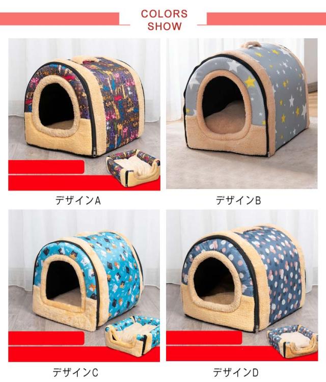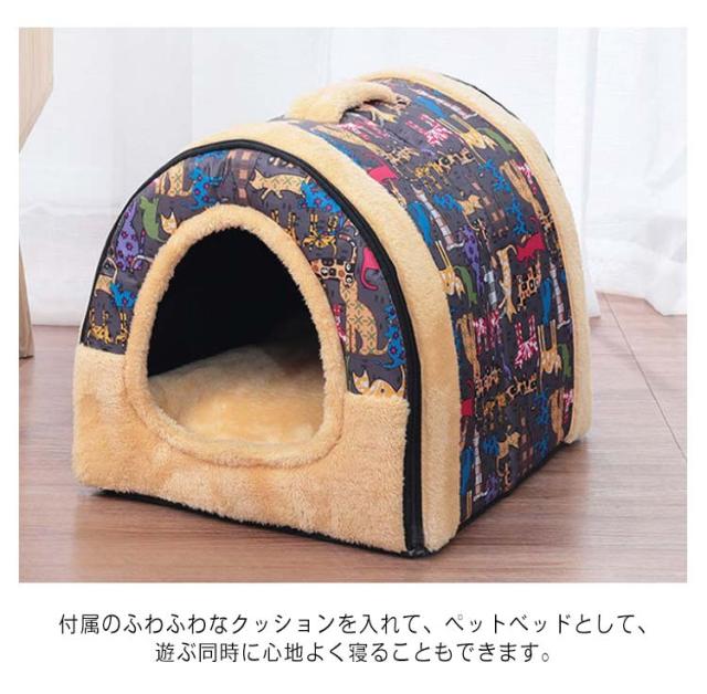 Lサイズ 犬用 ペットハウス 室内 2WAY 折りたたみ ペットベッド ふわふわ 保温 猫用 クッション付き ドーム ベッド 中型犬 大型犬 クッション 寝袋 あたたかい 秋冬 両用ベット 防寒 滑り止め