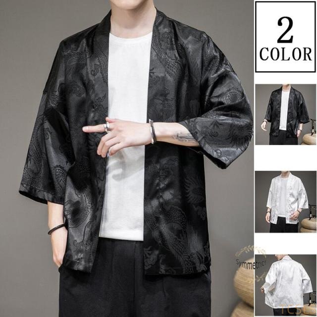 甚平 メンズ 羽織 半袖シャツ カジュアルシャツ 七分袖 甚平 カーディガン 羽織 龍柄付き 和装 復古 花火大会 夏祭り イベント 爽やか 涼しい ゆったり M-5XL