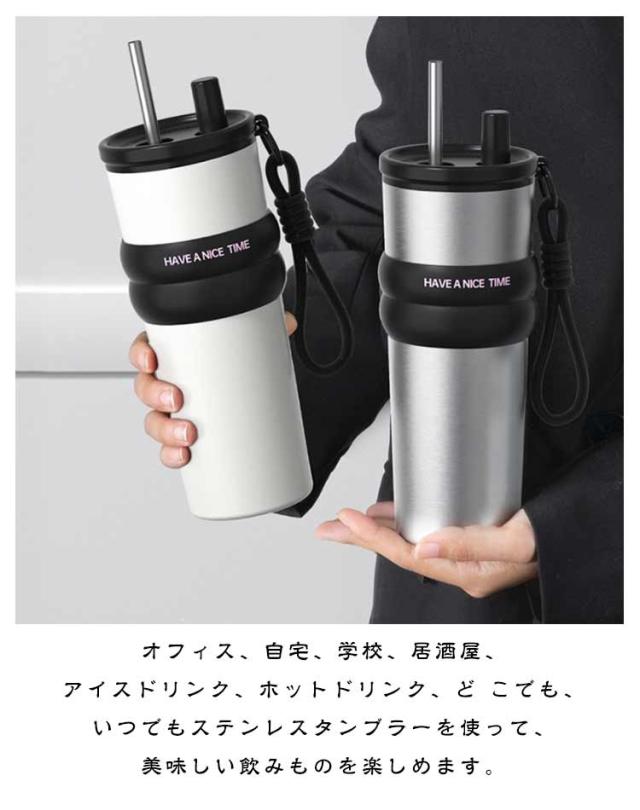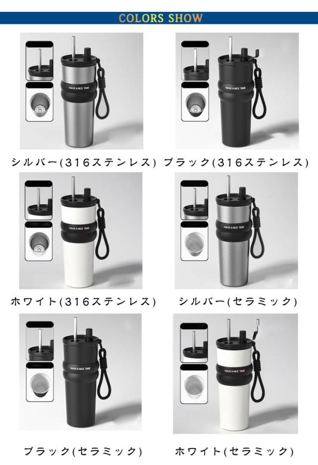 セラミック タンブラー セラミックコーティング ストロー付き 持ち運び 保温 保冷 大容量 コーヒーマッグ ウォーターボトル 魔法瓶 おしゃれ 漏れ防止 持ち運び 真空断熱 マグ ジャグ カップ オフィス 通勤 通学