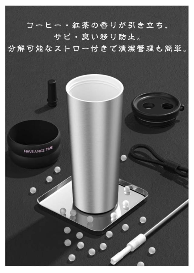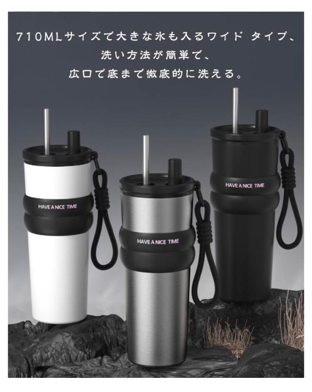 | 710mlサイズで大きな氷も入るワイド タイプ、洗い方法が簡単で、広口で底まで徹底的に洗える。 風味を邪魔しない陶器のような滑らかな内面加工で、金属臭ゼロ! コーヒー・紅茶の香りが引き立ち、サビ・臭い移り防止。分解可能なストロー付きで清潔管理も簡単。 二重層ステンレス真空断熱設計で、優れた保温・保冷性能で、飲み物を長時間保温・保冷できます。 オフィス、自宅、学校、居酒屋、アイスドリンク、ホットドリンク、ど こでも、いつでもステンレスタンブラーを使って、美味しい飲みものを楽しめます。 | |