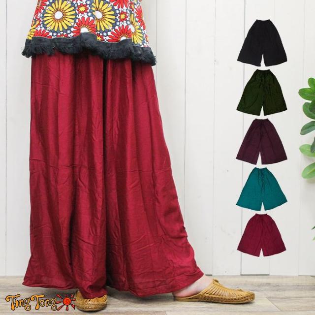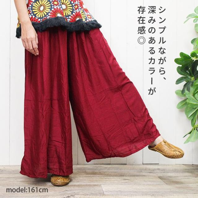 ワイドパンツ レディース フレア きれいめ ロング 無地 !さらさらレーヨン エスニック シンプル ナチュラル ウエストゴム リゾート