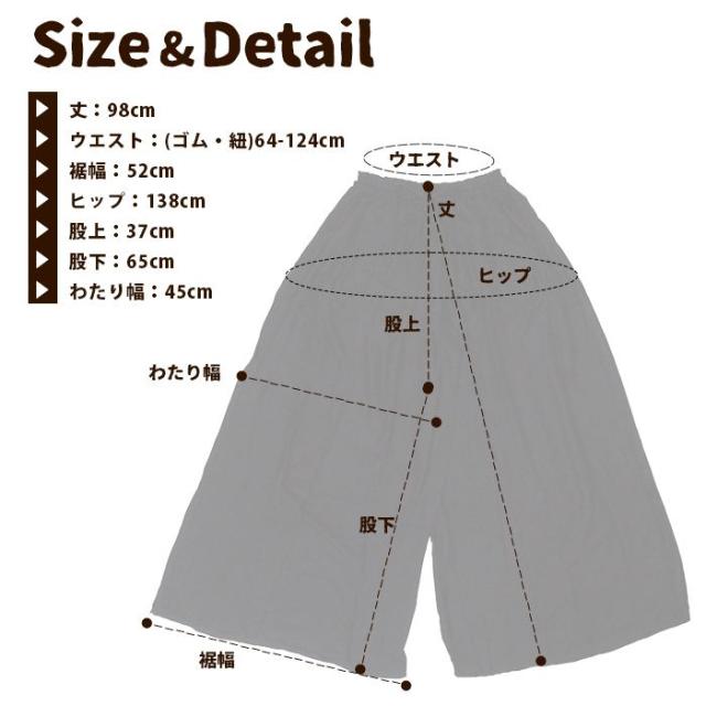 丈 98cm ウエスト (ゴム・紐)64-124cm 裾幅 52cm ヒップ 138cm 股上 37cm 股下 65cm わたり幅 45cm
