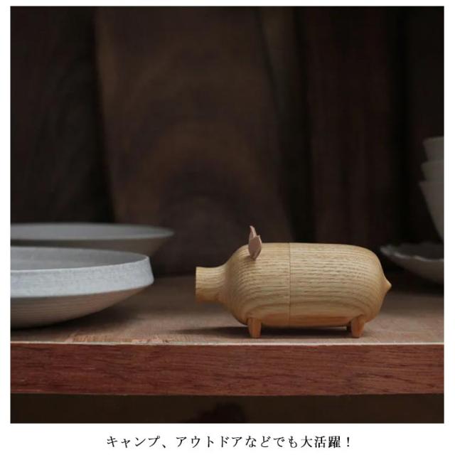 | 見ているだけでほっこりとした気分になれるブタとした木の楊枝入れです。 可愛いブタデザインなので実用製にもアクセントな印象にも。 木製なので安全衛生で安心できます。 傘の部分を取って、つまようじを入れ変えます。 季節感が味わえるのでインテリアとしても◎ ご自身でのご利用はもちろん、大切な方へのプレゼントとしてもおすすめ♪ キャンプ、アウトドアなどでも大活躍! | |