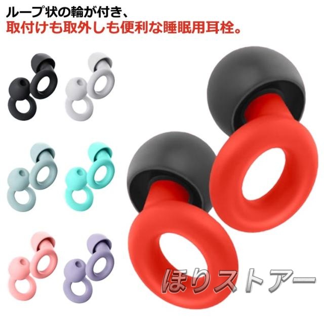| ループ状の輪が付き、取付けも取外しも便利な睡眠用耳栓。 短く設計しているので、寝返りの際に邪魔になりにくいです。 睡眠時の騒音(いびき、工事など)を和らげたり、仕事に集中するために欠かせない。 睡眠障害や聴覚過敏、聴覚障害でお困りの方、また、夜に眠りが浅い方に、心地よい深い眠りをサポートします。 水洗い可能でいつでも清潔に使えます。繰り返し使用でき、使い捨てタイプより経済的です。 オシャレな7色があり、自由にチョイス。専用ケース付きで、持ち運び便利です。 | |