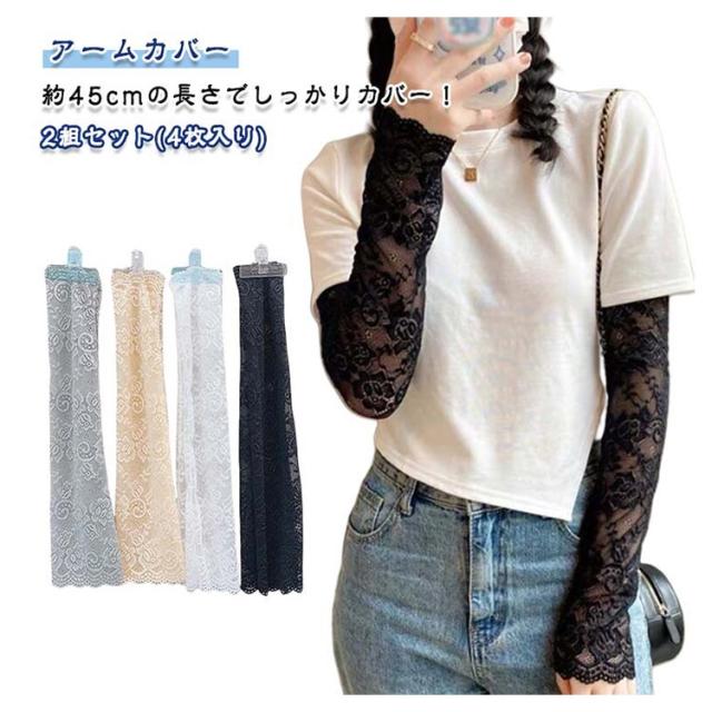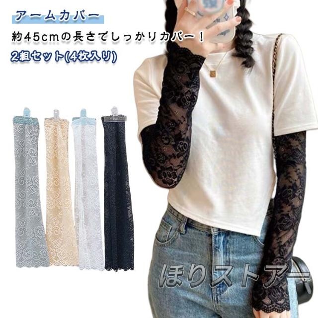 レース おしゃれ アームカバー UV対策 2組セット アームカバー 花柄 夏用 肌隠し 傷跡カバー 日焼け防止 通気性 肌色 フェミニン ブラック ホワイト グレー レディース 春夏 レース袖カバー 日焼け防止 薄手 40kg-75kg対応 長さ45cm