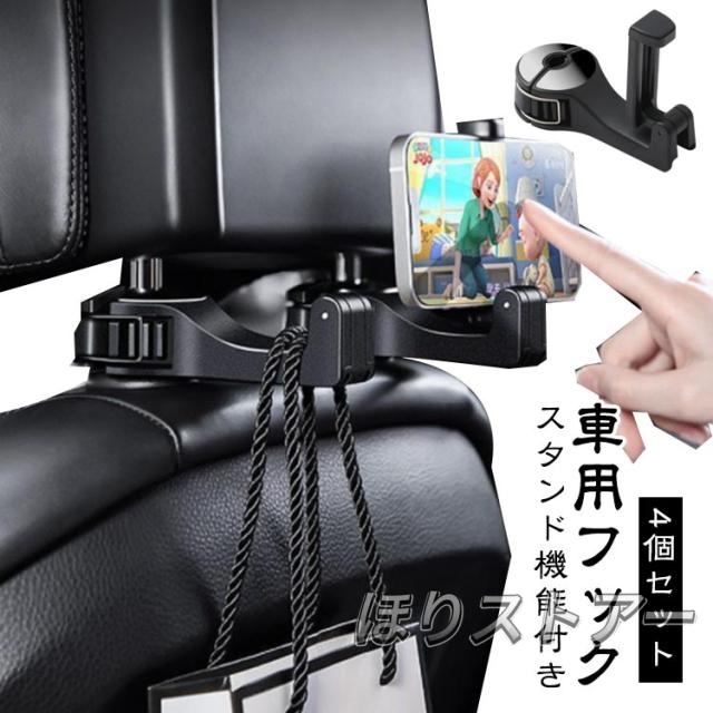 フック スマホスタンド 傘や鞄も引っ掛けて整理整頓 多機能車用収納フック 荷物フック 運転席 助手席 車用 ゴミ袋 【4個セット】車 フック 引っ掛け シート 車載ホルダー 調節可 荷物掛けフック 車用品 便利グッズ