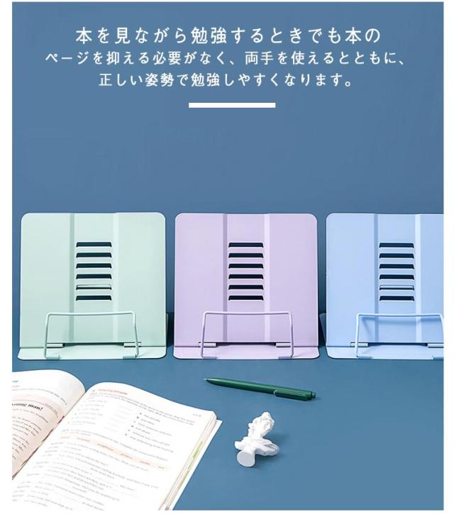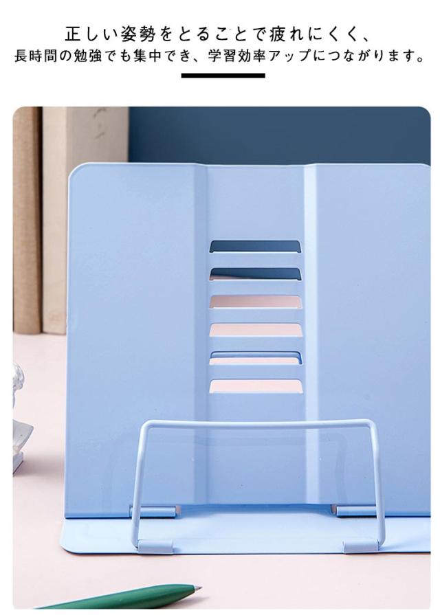 | 6段階角度調整可能な折り畳み式ブックスタンド。【安定性抜群のメタル製】【2個セット】 本を見ながら勉強するときでも本のページを抑える必要がなく、両手を使えるとともに、正しい姿勢で勉強しやすくなります。 正しい姿勢をとることで疲れにくく、長時間の勉強でも集中でき、学習効率アップにつながります。 6段階での角度調整ができるので、お子様一人ひとりにあった使い方が可能です。 ページストッパーが本をアームでしっかりホールド! そのため、手でおさえる必要がありません。 両手が使えるので、お子様が勉強にしっかり集中することができます。 本だけでなく、タブレット学習にもお使いいただけます。 さらに、プログラミング学習など本を見ながらキーボードを打つときも、ストレスフリーに学習することができます。 電子書籍(タブレット端末)、レシピ本、楽譜、教科書等のスタンドとしておすすめです。 | |