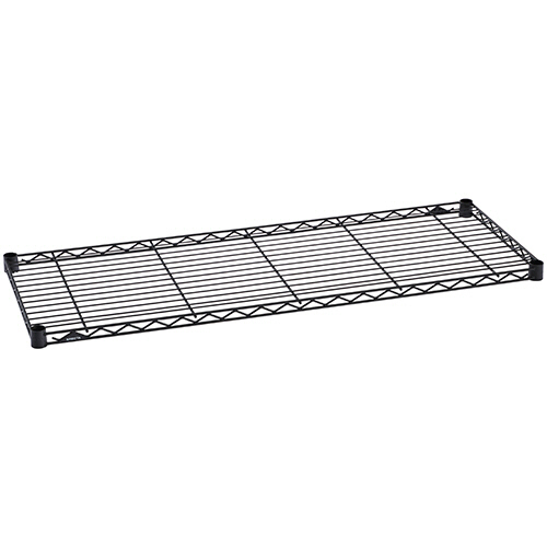 B1418B1。オフィスファニチャー > 収納家具 > オープンラック・物品棚 > 。●幅450×奥行350mm、ブラック色のワイヤーシェルフ。●有効内寸法は外寸法の幅-70mm、外寸法の奥行-70mmで計算してください。●棚1段あたり135kgの耐荷重。●線材の切断面に面取り加工を施し、安全性に配慮。●サビに強い仕上げ。※スーパーシリーズ、ファーストシリーズ等、他のシリーズとの互換性はありません。