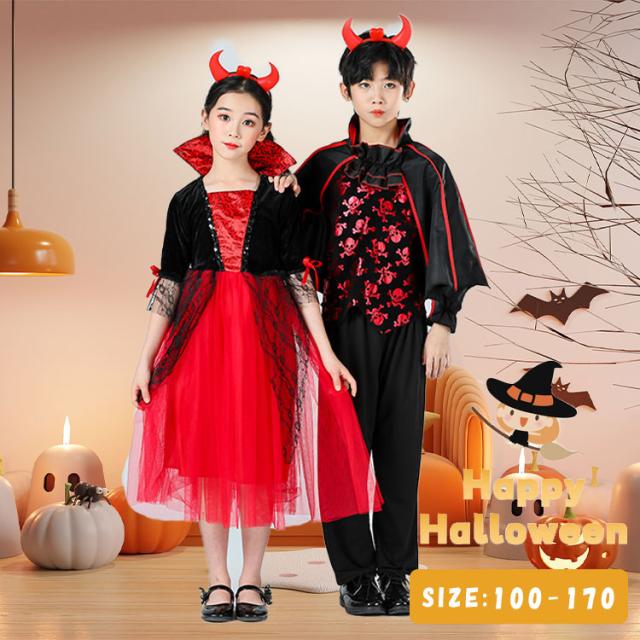 ハロウィン 衣装 子供 コスプレ 男の子 女の子 魔女 ドレス 吸血鬼 バンパイア ケープ風 上下セット ロングドレス 鬼の花嫁 ゾンビ 小悪魔風 ベビー キッズ 学園祭 パーティー イベント 100 110 120 130 140 150 160 170cm
