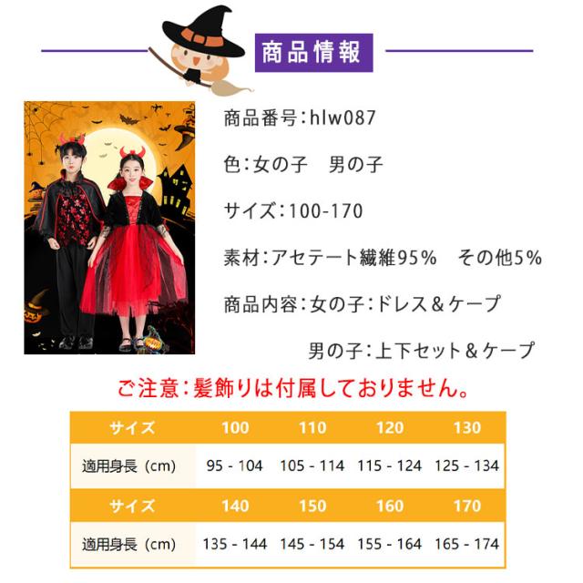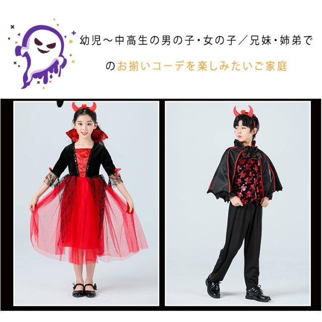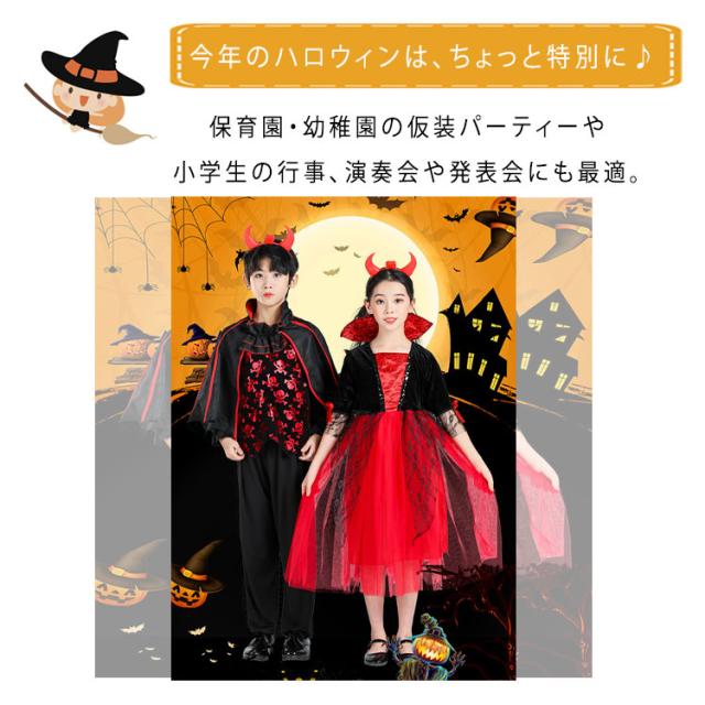 商品名 | ハロウィン 衣装 子供 コスプレ 男の子 女の子 魔女 ドレス 吸血鬼 バンパイア ケープ風 上下セット ロングドレス 鬼の花嫁 ゾンビ 小悪魔風 ベビー キッズ 学園祭 パーティー イベント 100 110 120 130 140 150 160 170cm |