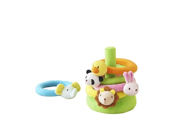 ライオン、ぞう、パンダ、ひよこ、うさぎ、5匹の動物がリングになったわなげです。