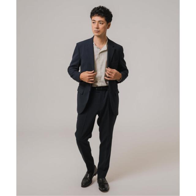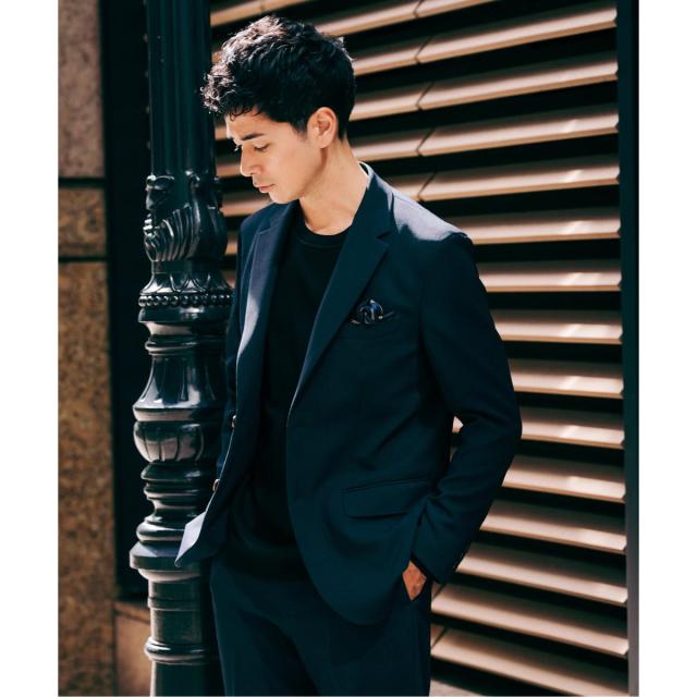 サイズ感:ほどよくゆとりのあるスマートなシルエット。ジャケット・パンツともにすっきりと見えるバランスです。
