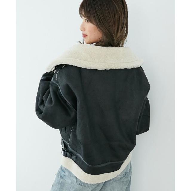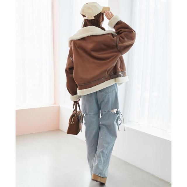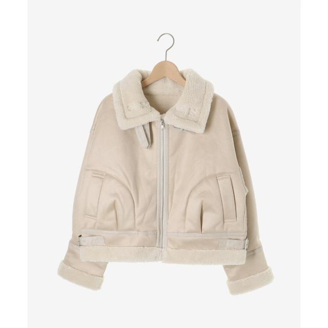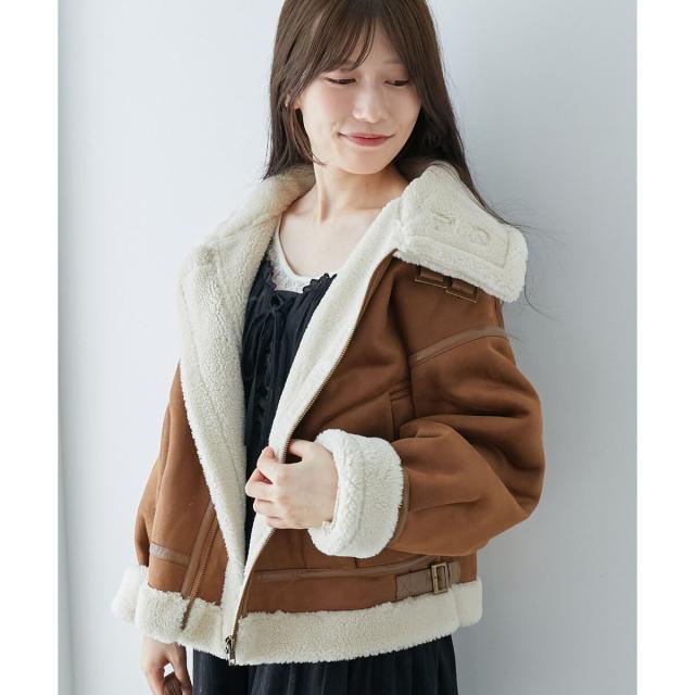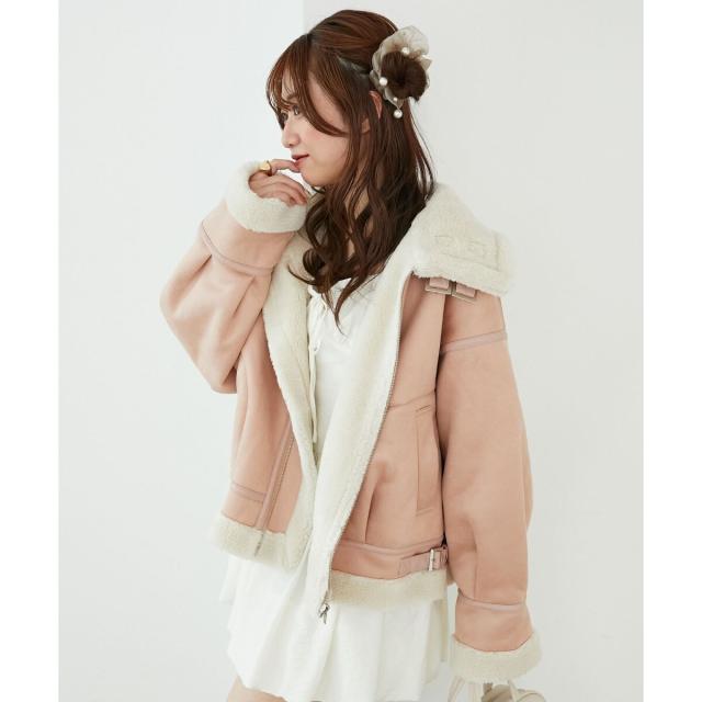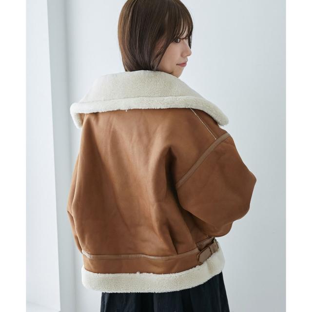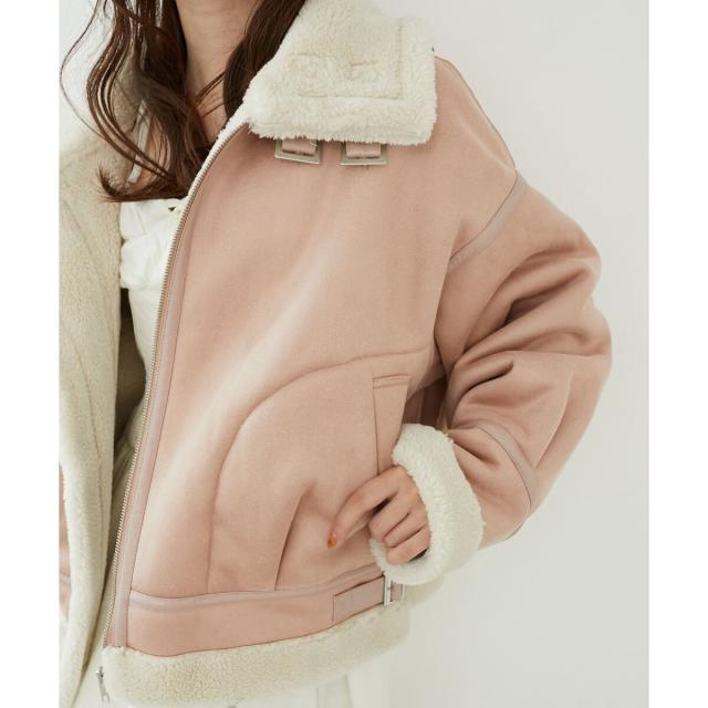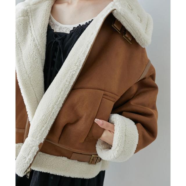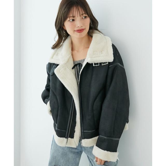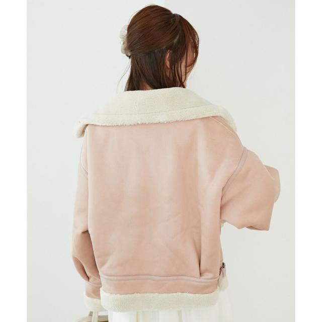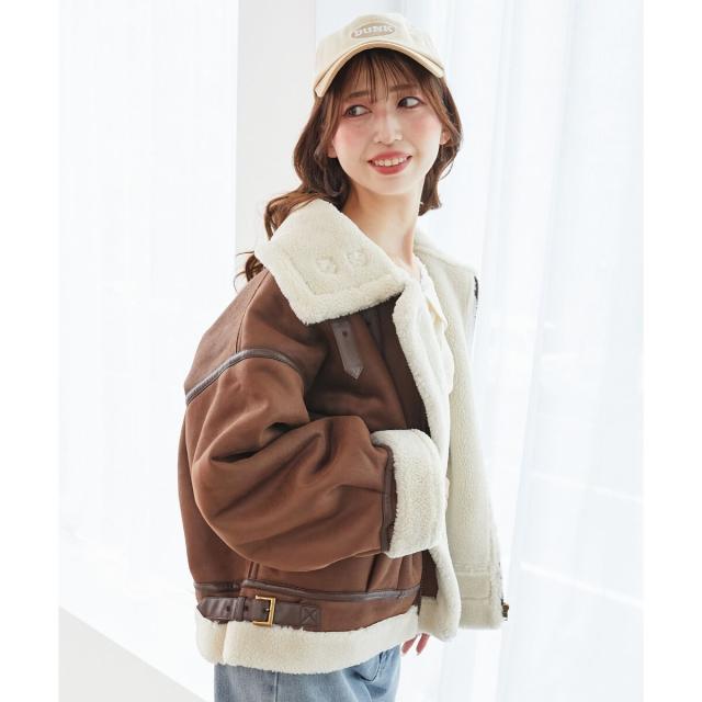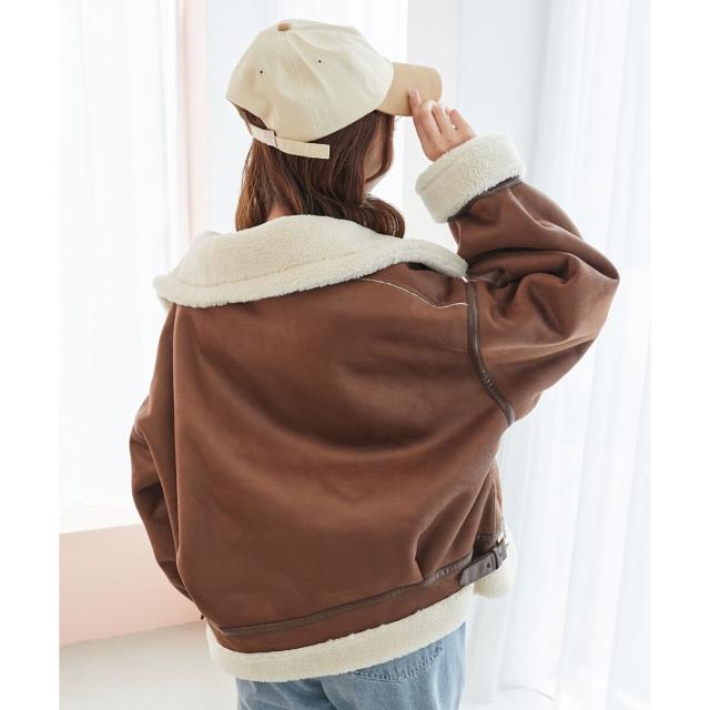 こなれ感を演出する合皮のパイピングや、袖口・裾のボアの切り替え、飾りベルト付等細かなディティールにもこだわった、羽織るだけでトレンドムードたっぷりな万能ブルゾンです。