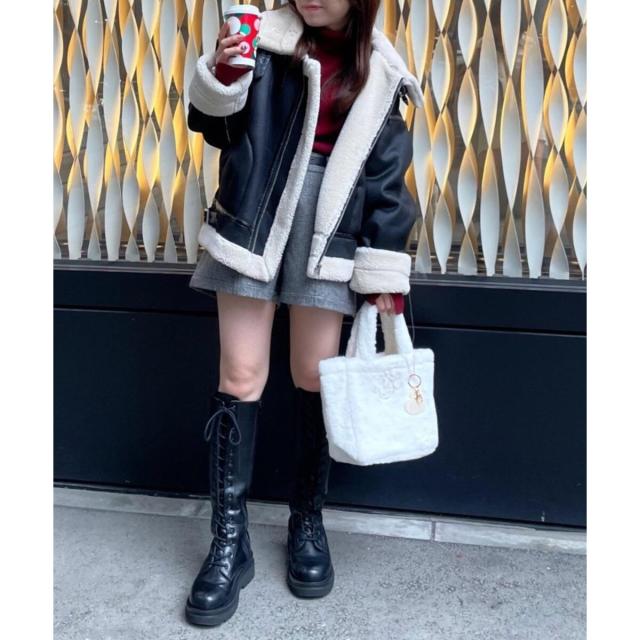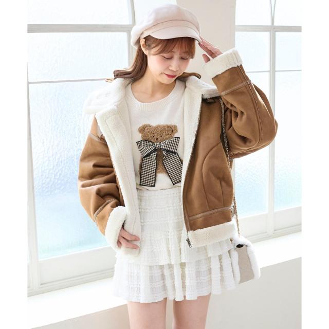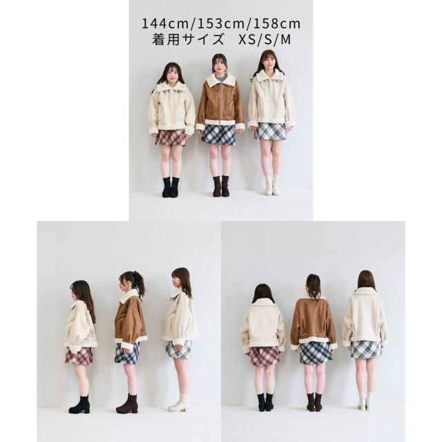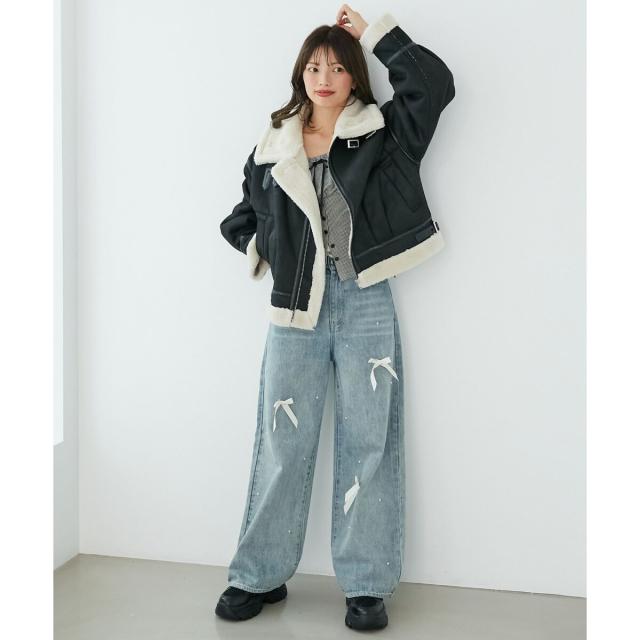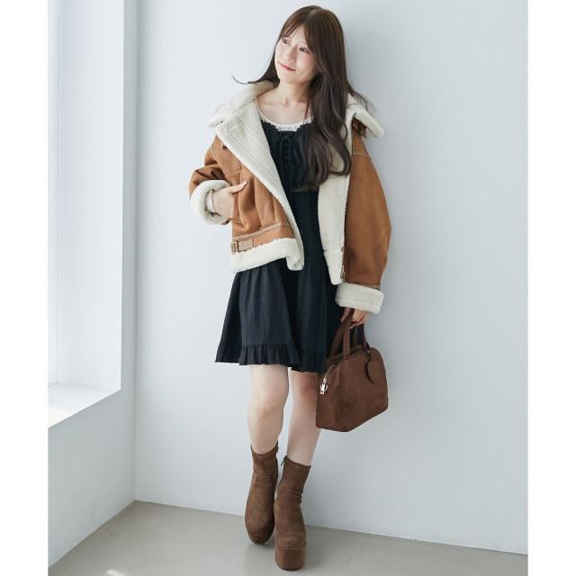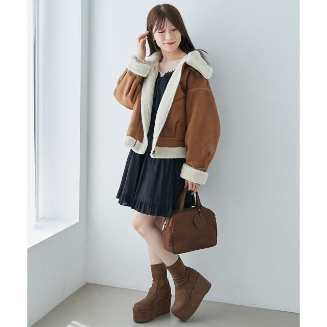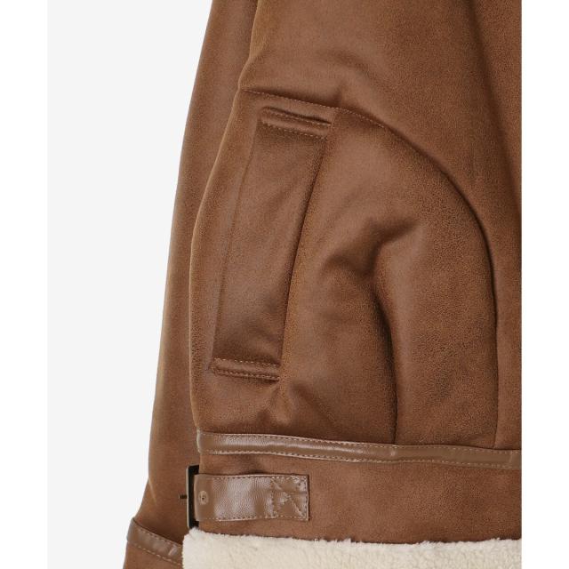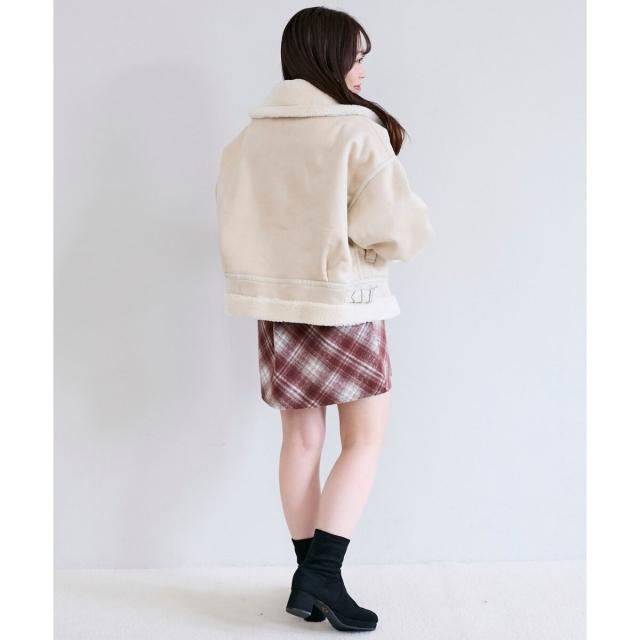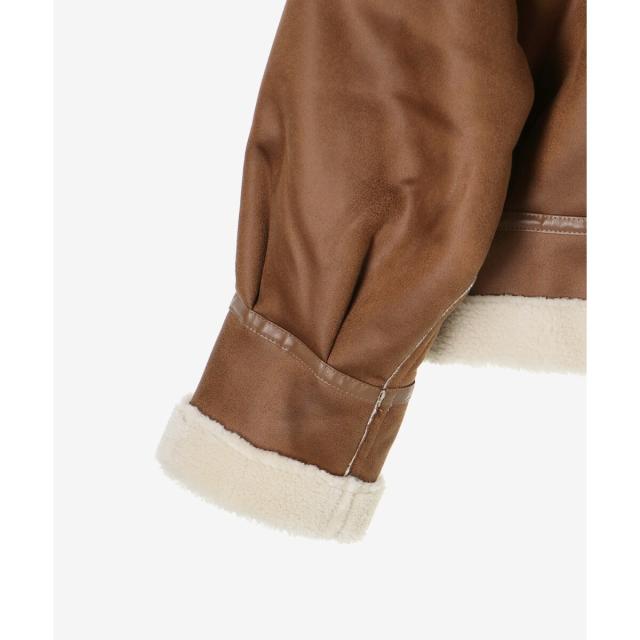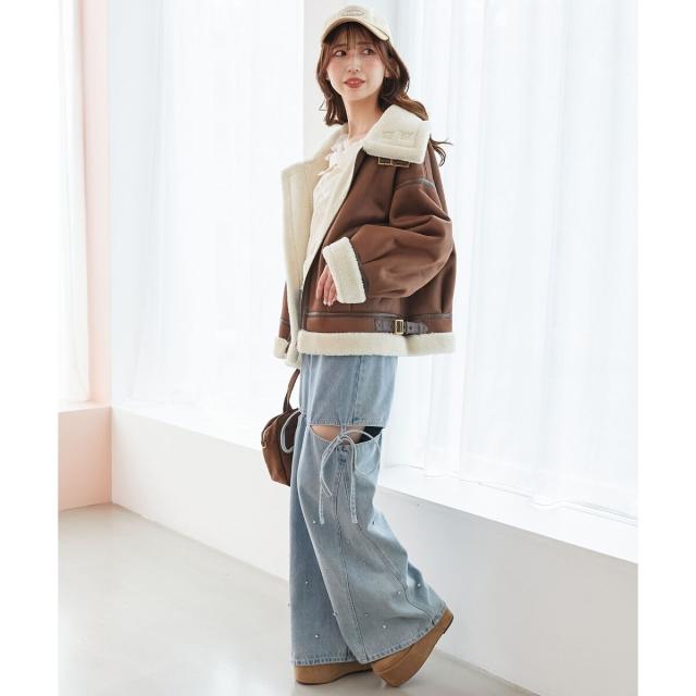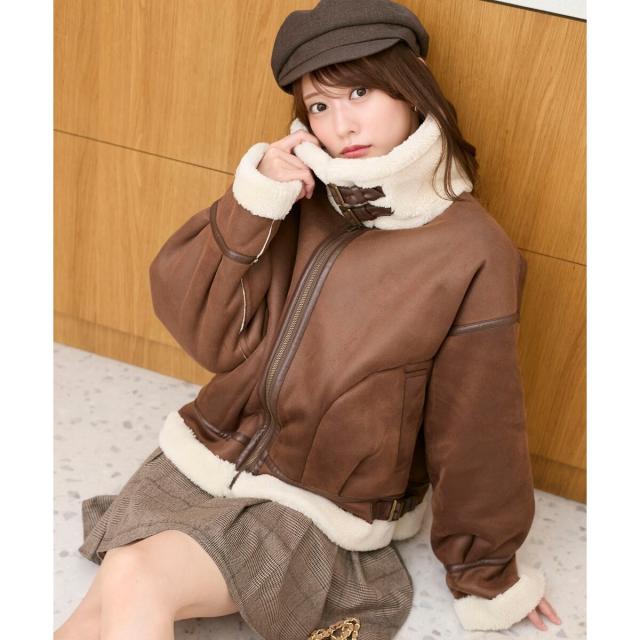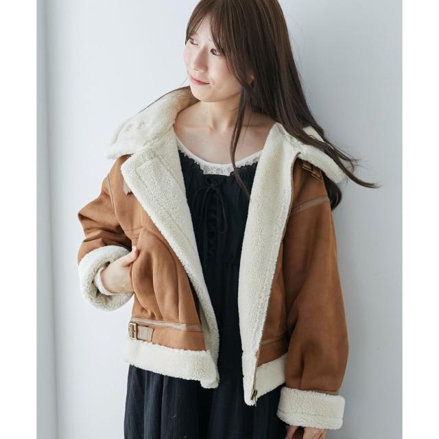 こなれ感を演出する合皮のパイピングや、袖口・裾のボアの切り替え、飾りベルト付等細かなディティールにもこだわった、羽織るだけでトレンドムードたっぷりな万能ブルゾンです。