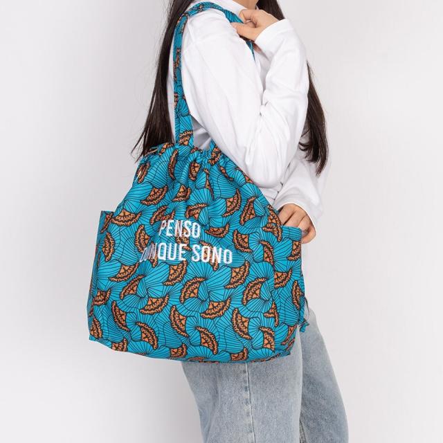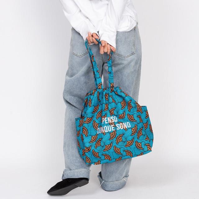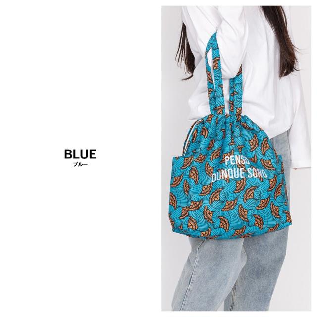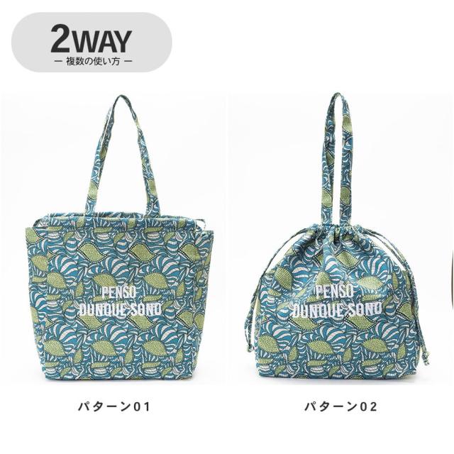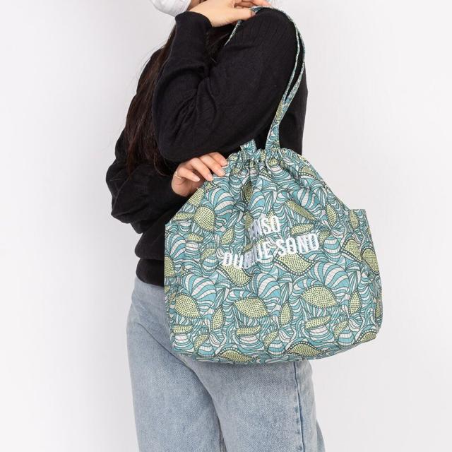 紐を縛ればドロストにもなるのでトートと巾着の2通りのデザインが楽しめます。
