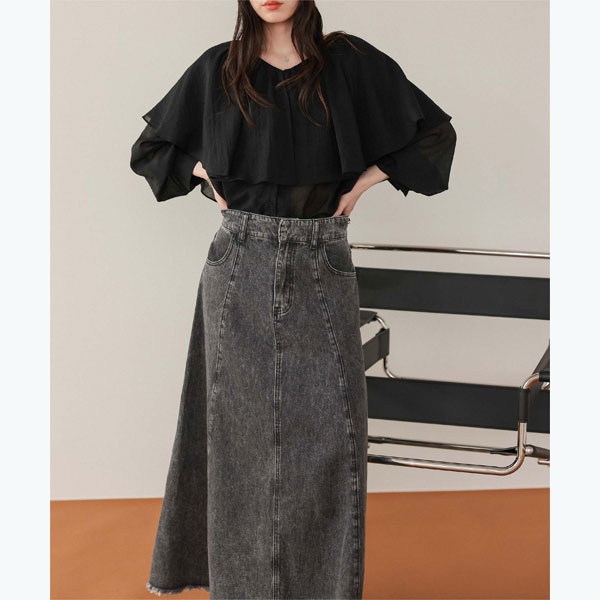 ・すっきりとしたハイウエストデザインから、裾にかけてフレアAラインのボリュームが目を惹くデニムボリュームスカート