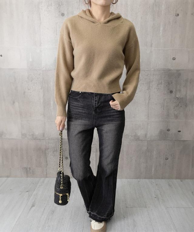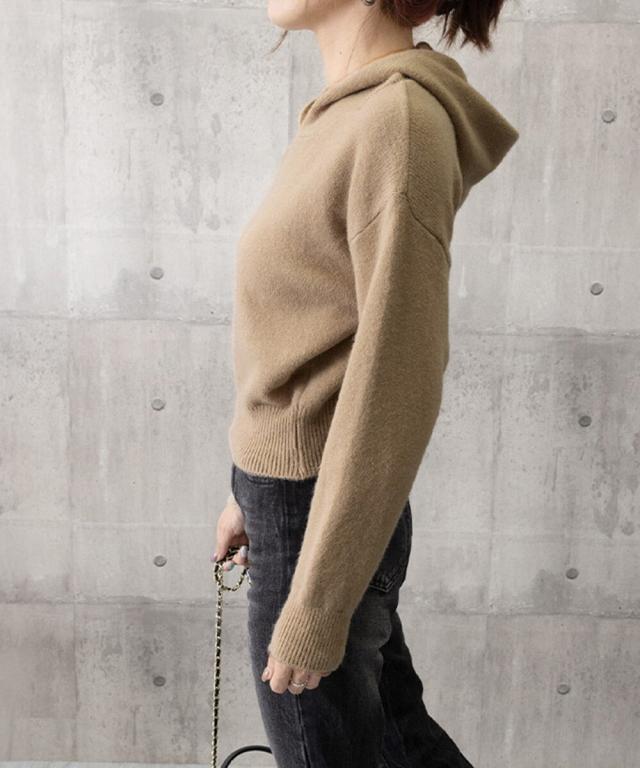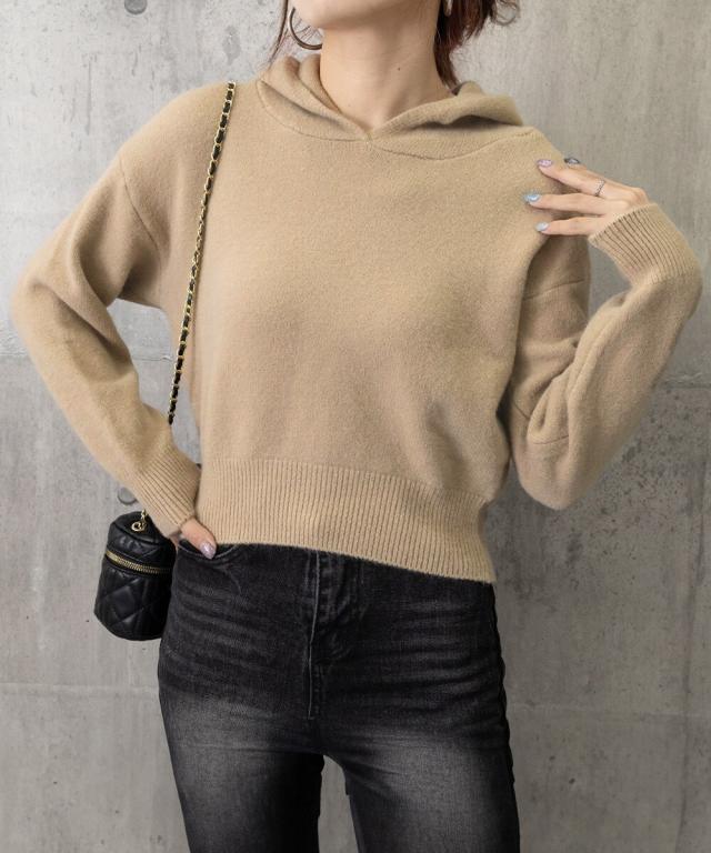 柔らかな肌触りが心地よい、シンプルで合わせやすいショート丈ニットパーカー。