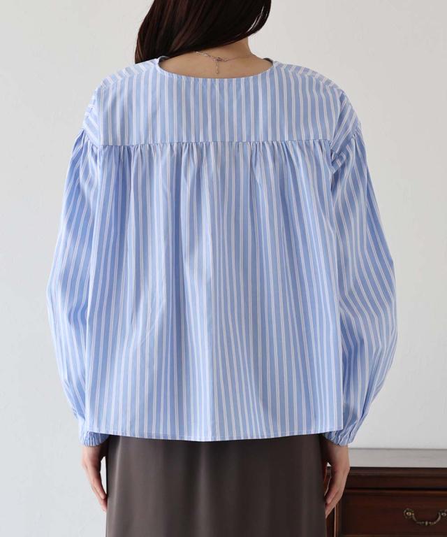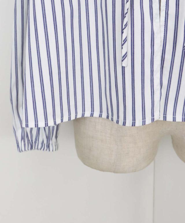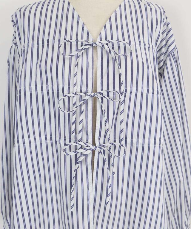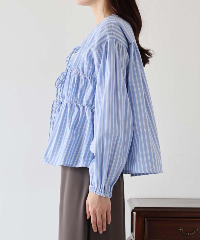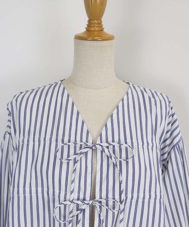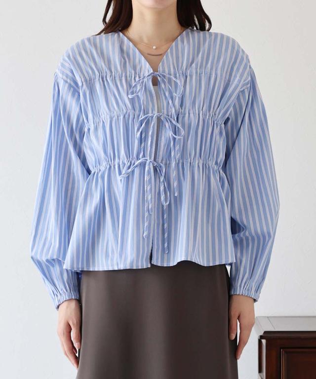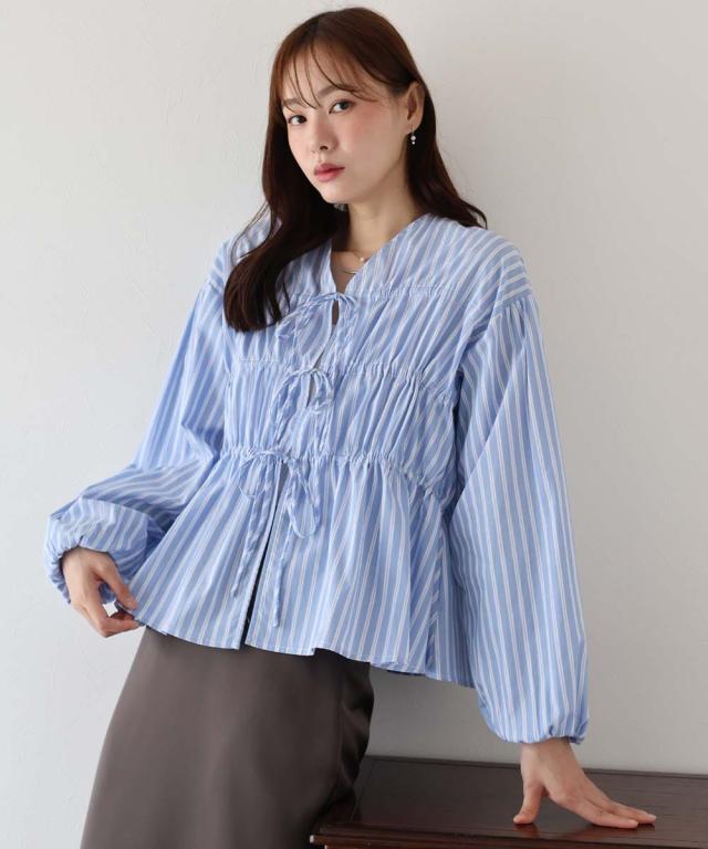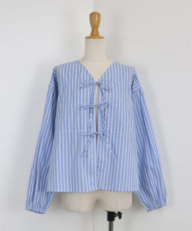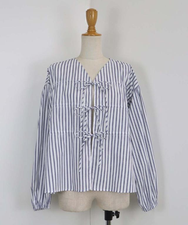 リボンドロストデザインでキュートなディティールをプラスしたストライプブラウス。