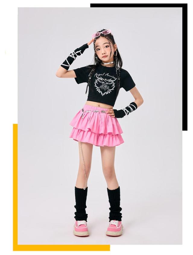 ダンス衣装 ブラック ピンク ガールズ キッズ セットアップ ヒップホップ ストリート系 y2k 衣装 子供服 女の子 アイドル風 可愛い 団体服 応援団 発表会 原宿系 トップス 青 半袖 スカート チアダンス チアガール k-pop 衣装 jazz hiphop 演出服