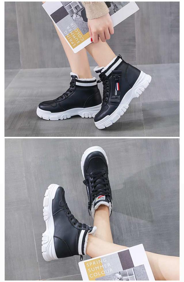ハイカットスニーカー 裏起毛 厚底スニーカー レディース ハイカット スニーカー レディースシューズ 美脚 履きやすい 滑り止め 外反母趾 シューズ 厚底 大きいサイズ シンプル 耐摩耗 シューズ 大人 女性 春秋 冬 あったか 脚長効果 送料無料