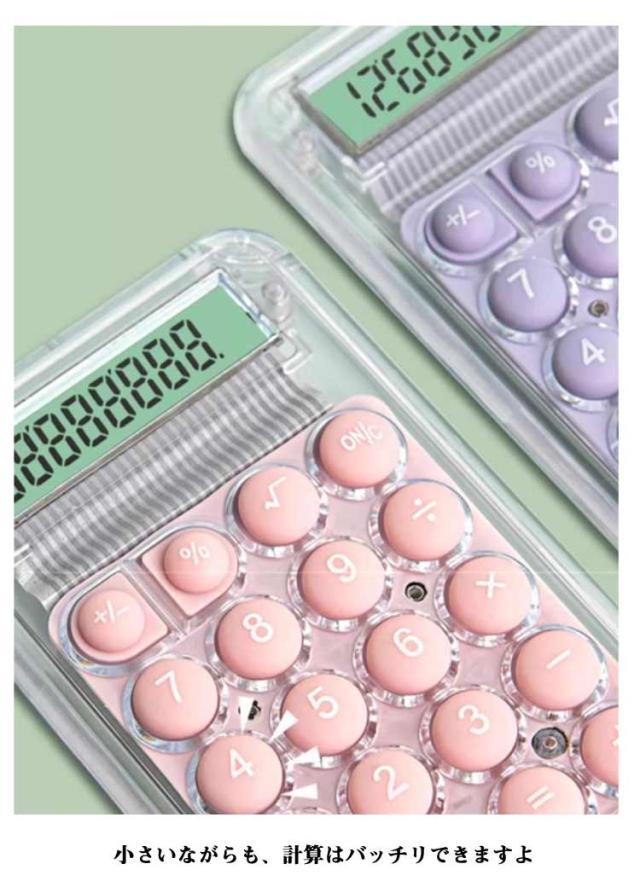 | シリコン製のまーるいボタンがカワイイ!手のひらサイズのミニ電卓です。 持ち歩きに便利! かばんの中でも邪魔になりません♪ ペンケースやポーチの中にも入りそう★ 小さいながらも、計算はバッチリできますよ ボタンをポチポチ押す感覚も楽しい! 1つ持っておくと何かと役立つアイテムです。 | |