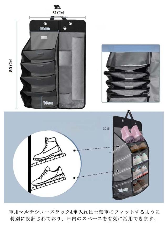 車 傘ホルダー 車用マルチシューズラック 傘入れ カーシューズラック 車用収納ラック靴入れ 傘立て 傘ホルダー 小物収納グッズ 下駄箱 折りたたみ式 車用収納ボックス 多車種対応 梅雨対策 送料無料